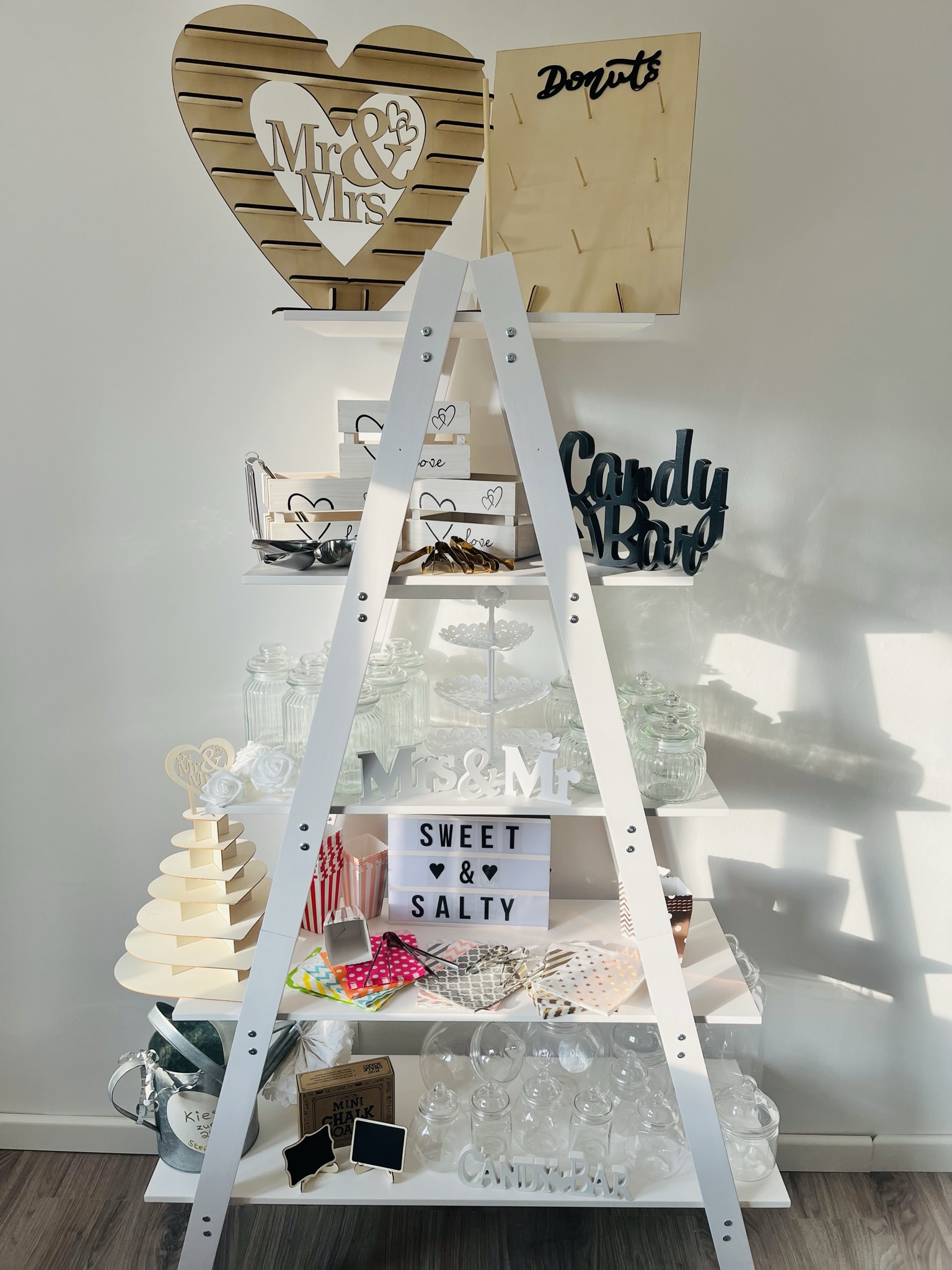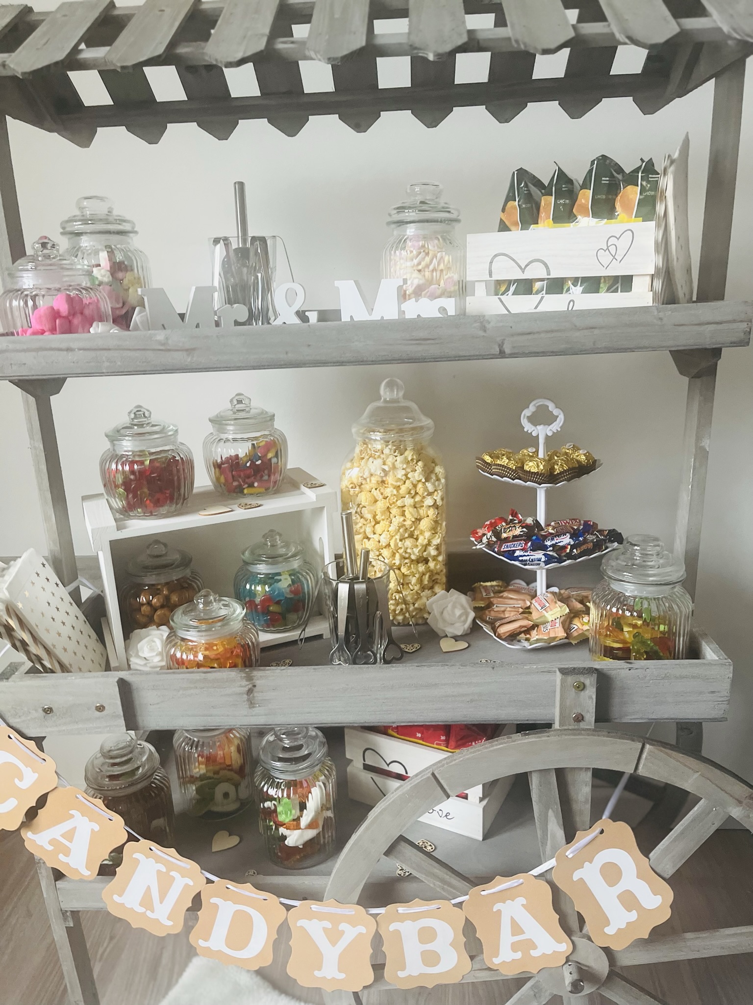 Das Bild zeigt eine breite Palette von zusätzlichen Extras für unsere Candybars, einschließlich des Donut- und Herz-Aufstellers. Diese Extras bieten eine vielfältige Auswahl an Leckereien und ergänzen die süße Atmosphäre jeder Veranstaltung. Der Donut-Aufsteller präsentiert eine verlockende Auswahl an köstlichen Donuts in verschiedenen Geschmacksrichtungen, während der Herz-Aufsteller eine Fülle von herzförmigen Leckereien bietet. Diese Extras verleihen unseren Candybars eine besondere Note und machen sie zu einem unvergesslichen Highlight für jeden Anlass.